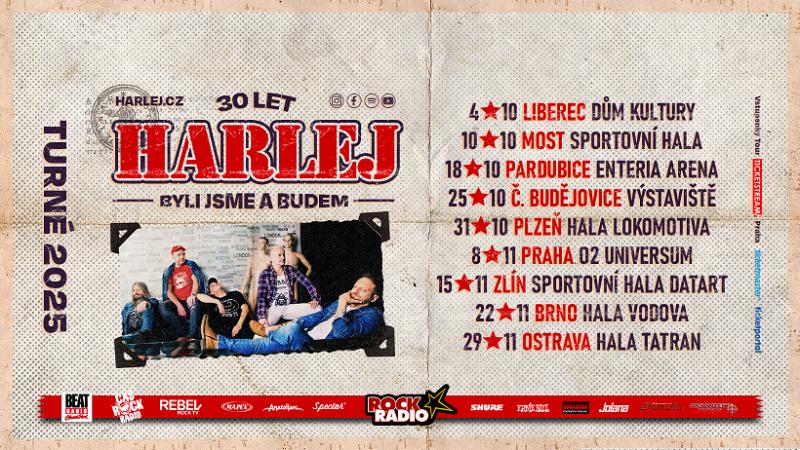 Skupina Harlej slaví v letošním roce 30 let na hudební scéně. A to už je co slavit, tudíž si ke kulatým narozeninám nadělili koncertní turné "Byli jsme a budem," které již probíhá. Tato koncertní šňůra se táhne napříč Českou republikou a mimo jiné obsahuje zastávku v pražském O2 Universu. Jako support s nimi jede šumperská kapela Koblížci!