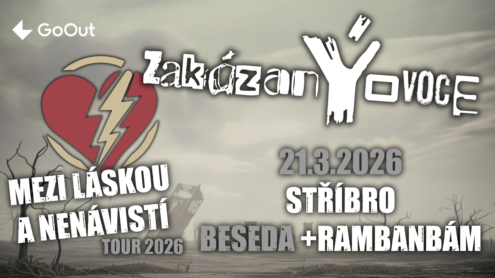 V sobotu 21. března 2026 se do západočeského Stříbra a místního Coctail baru Beseda přesunula punkrocková kapela zakázanÝovoce se svým aktuálním turné. Stejnojmenná koncertní šňůra navazuje na novou desku Mezi láskou a nenávistí, která vyšla začátkem letošního roku.