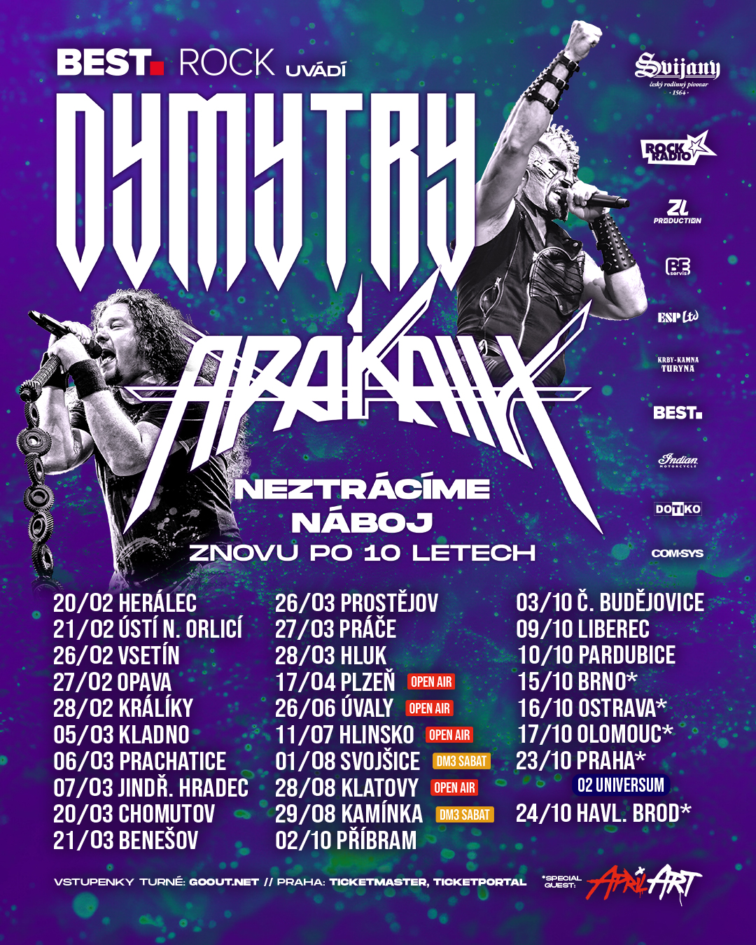 Two legends of the Czech metal scene – Dymytry and Arakain – are joining forces again after a long ten years and heading out on a joint tour titled "Neztrácíme náboj" ("We're Not Losing Our Spark"). Fans can look forward to a spectacular concert run across theaters, halls, and open-air festivals, connecting two generations of rock music and...