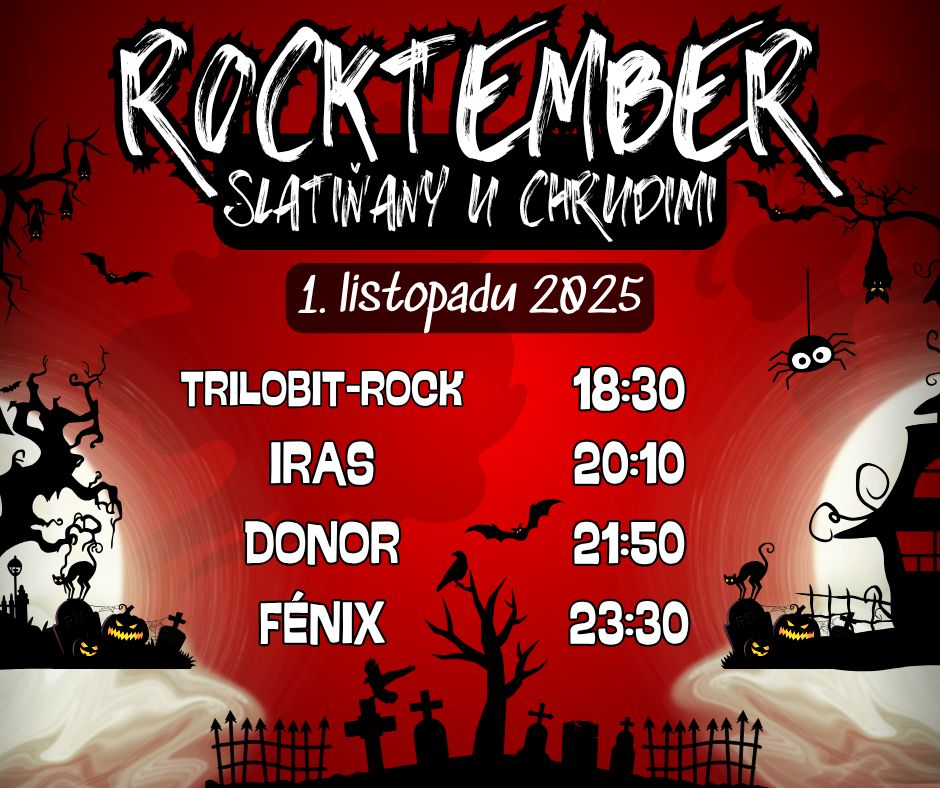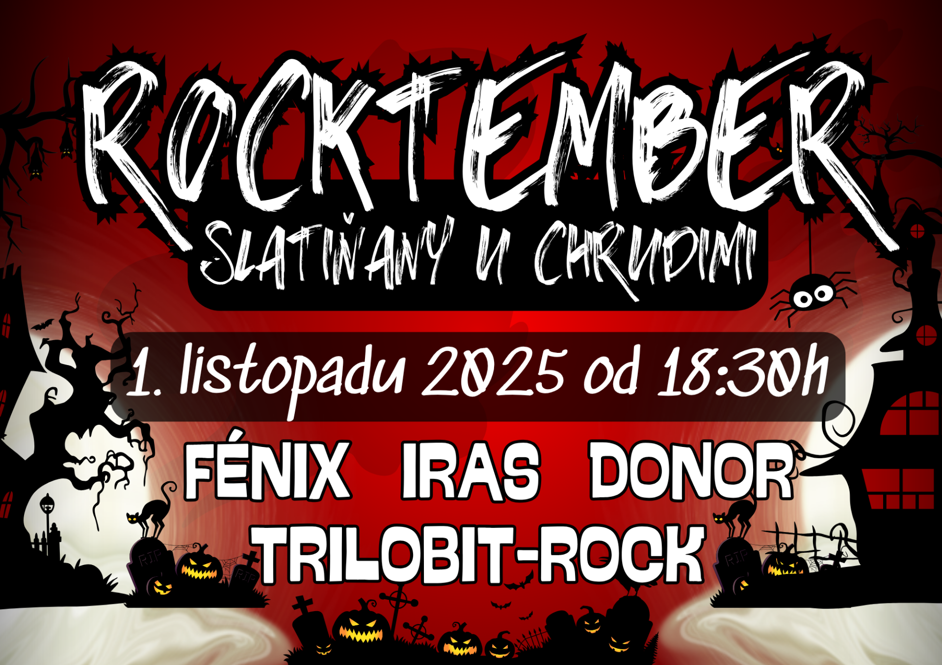 Už 1. listopadu se mezi Dušičkami a Halloweenen rozezní rockové tóny kapel Trilobit-rock, Iras, Donor a Fénix. Přijeď zažít noc, kde se potká energie, přátelství a pořádný kus českého rocku. 🤘