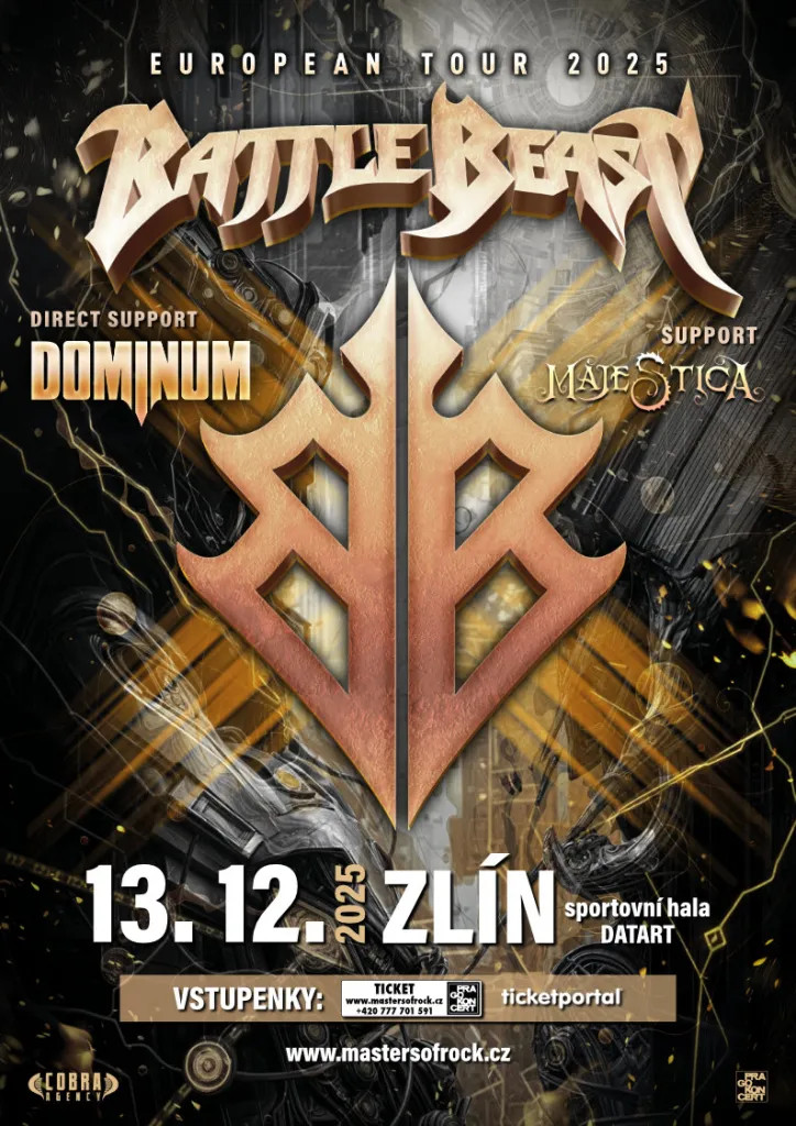 Finská power-metalová senzace BATTLE BEAST přiveze v prosinci 2025 do Zlína své nové album! Kapela je proslulá svými ohnivými show, neskutečnou energií a charismatem zpěvačky Noory Louhimo, díky nimž si získala fanoušky po celém světě. Po úspěchu desky Circus of Doom se navrací s novou tvorbou a slibuje koncert, který rozproudí krev v žilách každého metalisty.