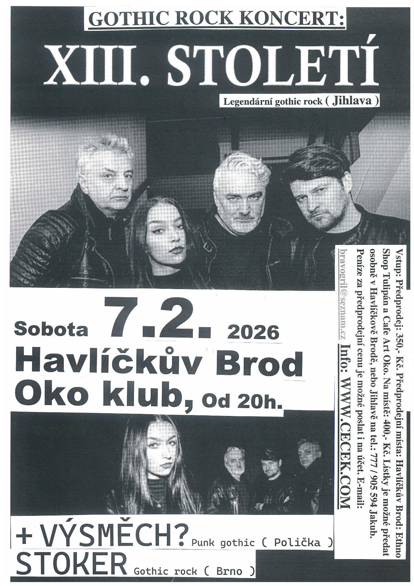 A February evening at Klub Oko promises the return of a gothic atmosphere that cuts not only into the ears, but straight into the bones. Three bands, three different shades of darkness — from legends who wrote the history of Czech gothic rock to contemporary acts pushing it further. Prepare for a night where the lights fade and the music takes control.