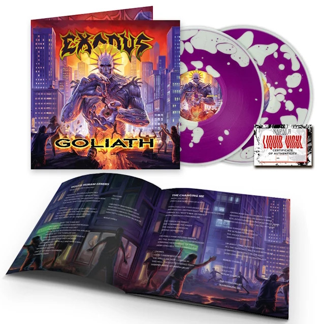 The new album Goliath builds on the return of vocalist Rob Dukes, whose performance the band describes as the best of his career. At the same time, it is the most collective effort EXODUS have ever created—songs were written by multiple band members, and the album also features guest appearances by Peter Tägtgren (HYPOCRISY, PAIN) and violinist Katie Jacoby.