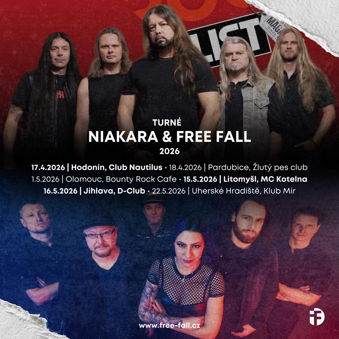 FREE FALL, a rock band from Uherské Hradiště, will hit the road in spring 2026 for a joint tour with metal formation Niakara. The concert series Anubis Tour 2026 kicks off on April 17 in Hodonín and culminates on May 22 in their hometown of Uherské Hradiště. Fans can look forward to an energetic set, new material, and key tracks spanning the bands' entire discographies.