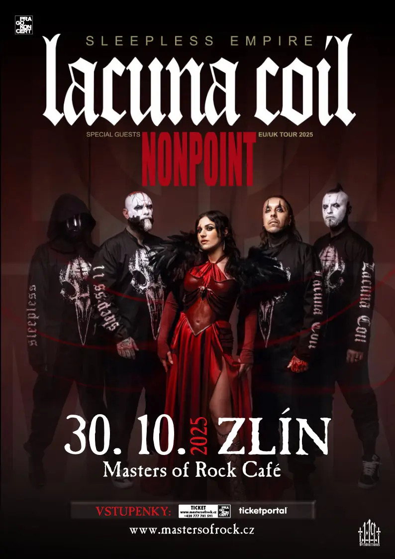 Italská gothic metalová ikona Lacuna Coil vyráží na evropské turné Sleepless Empire a zastaví se 30. října 2025 ve zlínském Masters of Rock Café. Připravte se na večer plný temné energie, silných melodií a nezapomenutelných pecek – od novinek z letošního alba Sleepless Empire až po osvědčené klasiky, které kapelu katapultovaly mezi špičku světové gothic metal scény.