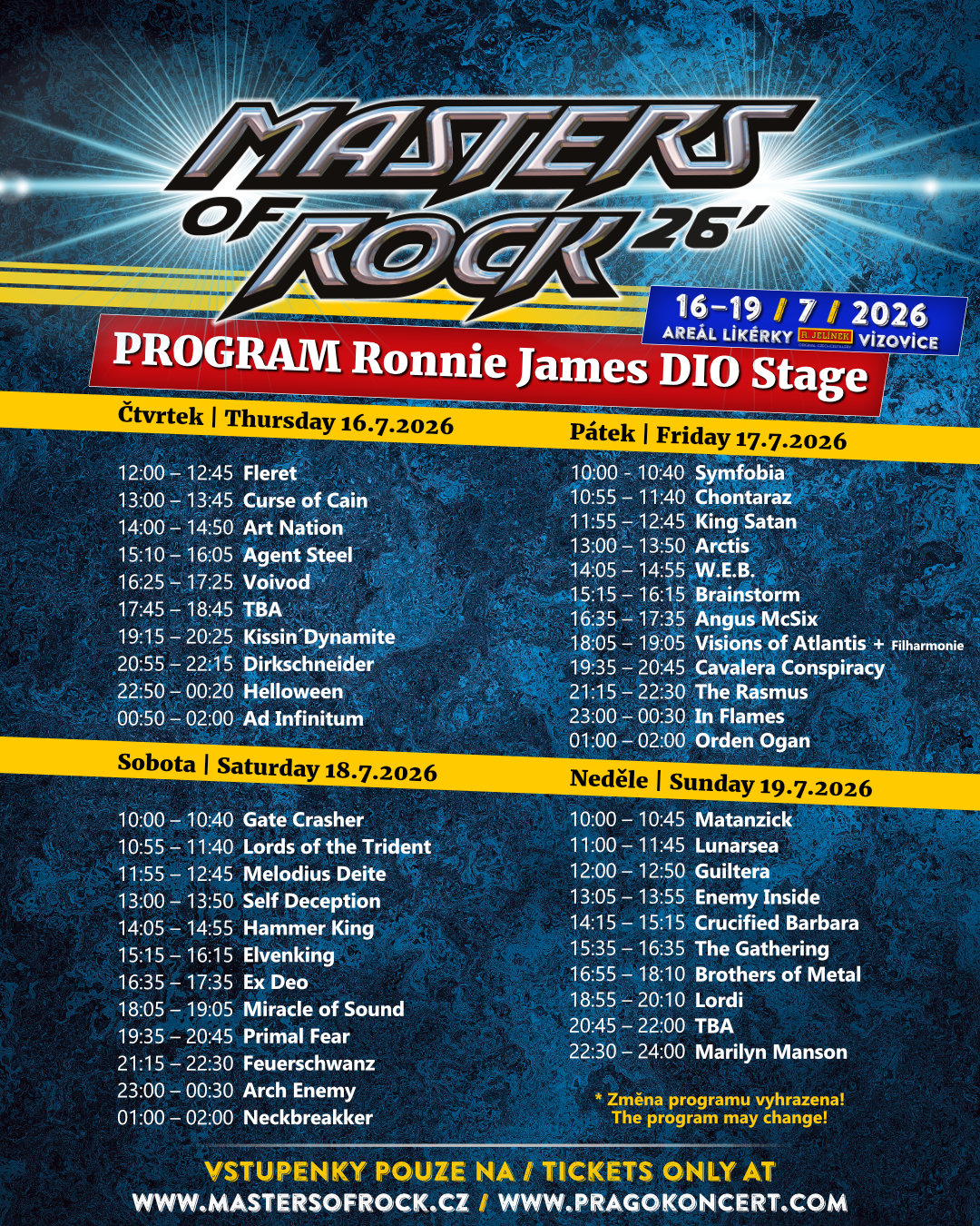 The program of the main Ronnie James Dio Stage is nearly complete, while the second stage will be finalized in the coming weeks. Tickets for the full festival, individual days, and VIP stands are already on sale. Masters of Rock 2026 confirm that Vizovice remain one of the key points on the European metal map.