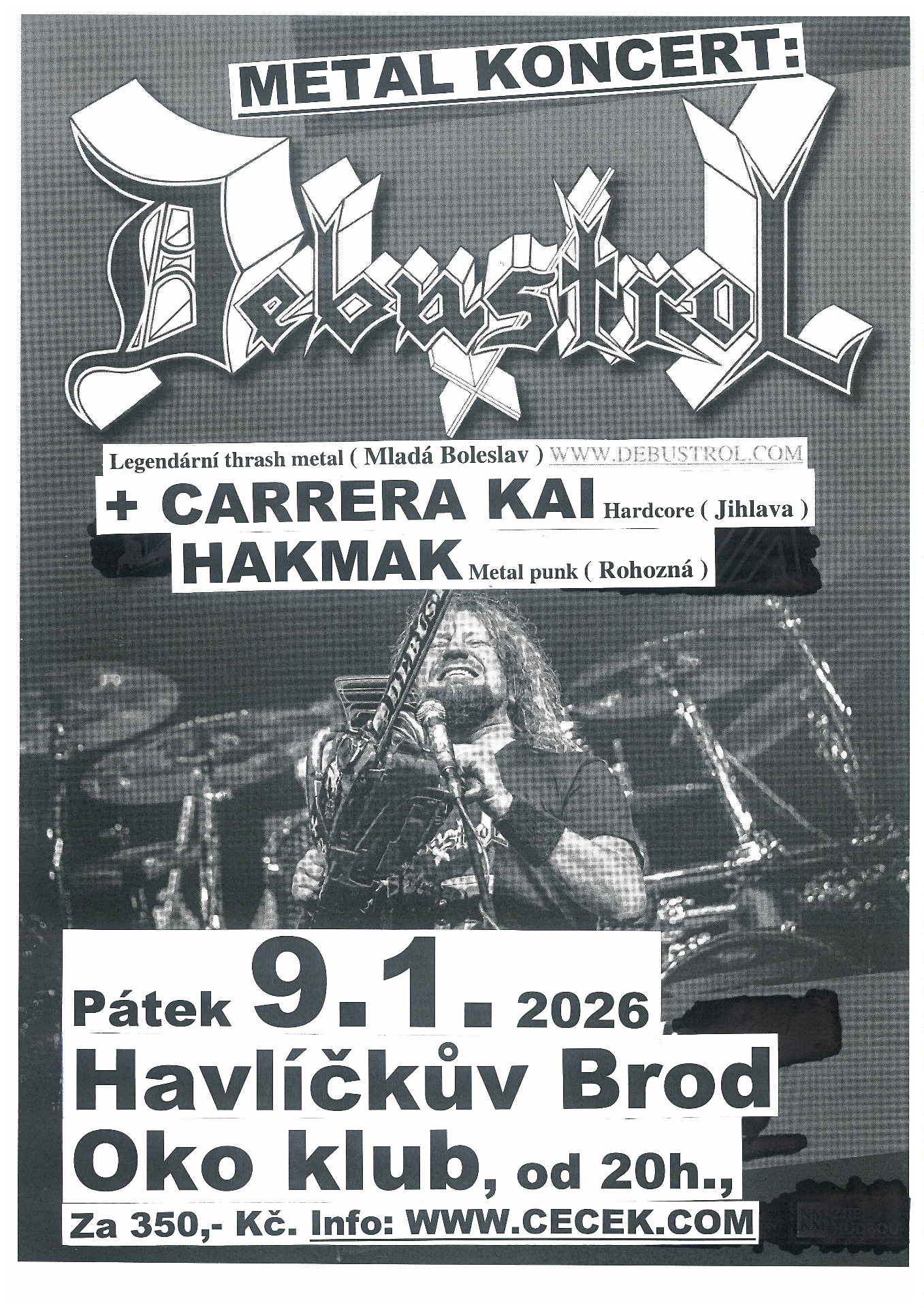 První lednový pátek roku 2026 přinese přesně ten druh nářezu, který probudí i mrtvý město. Tři kapely, tři styly, jedna mise — rozdrtit Klub Oko.