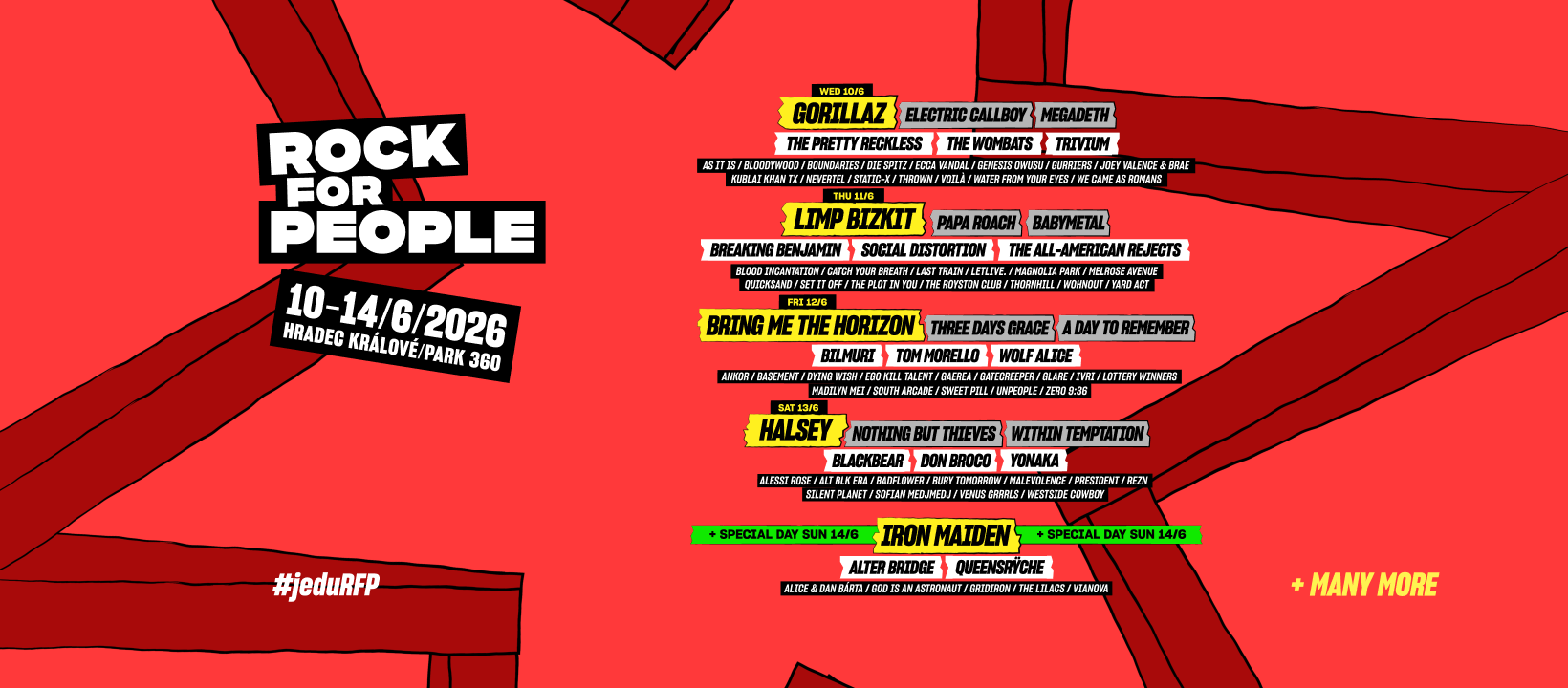 Gorillaz (10/6), Limp Bizkit (11/6), Bring Me The Horizon (12/6), Halsey (13/6), Iron Maiden (14/6)