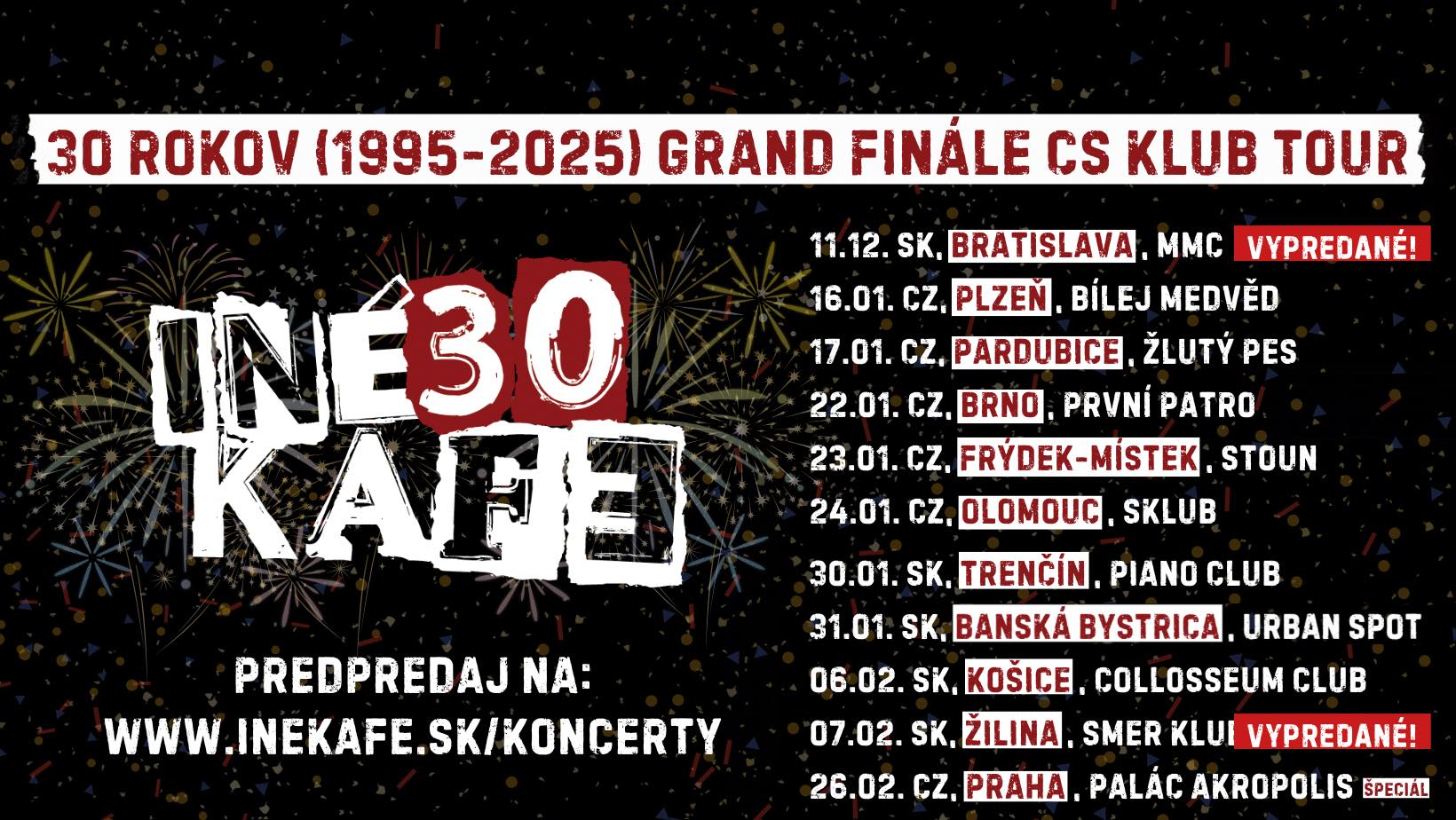 V rámci GRAND FINÁLE CS KLUB TOUR 30 rokov (1995-2025) dorazila v pátek 16.01.2026 naše sousedská punkrocková kapela Iné Kafe i do pivního města, zvolila klub Bílej Medvěd. Turné bylo zahájeno jedním koncertem v domovské Bratislavě již v prosinci, v naší zemi byla prvním koncertem právě Plzeň, zároveň šlo o první koncert kapely v letošním roce. V...