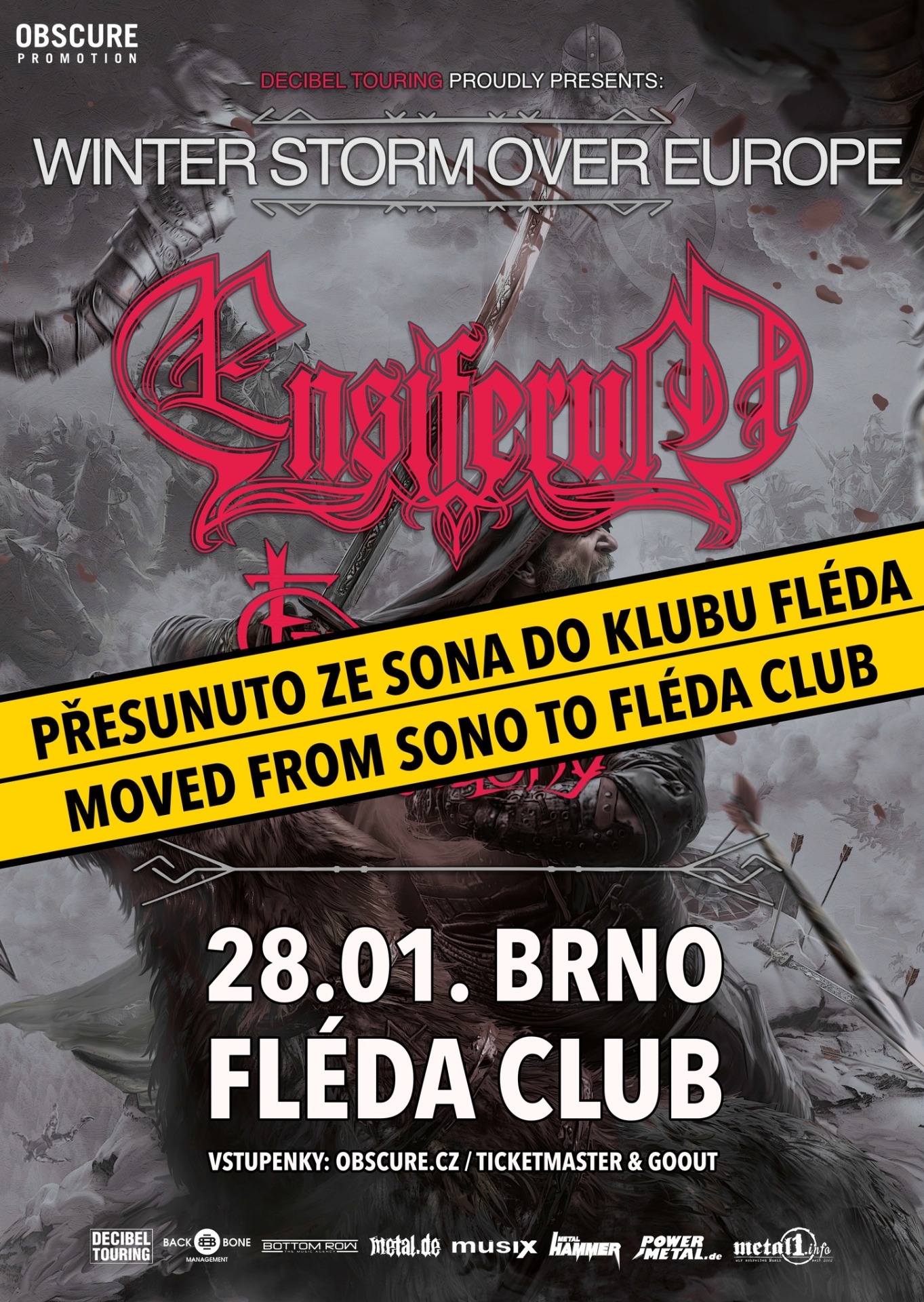 Ve středu 28. ledna 2026 se nad brněnskou Flédou zatáhla mračna. Nebylo to předzvěstí deště, ale příchodem mrazivé vichřice ze severu. Turné Winter Storm over Europe přineslo silnou sestavu Ensiferum, Freedom Call a Dragony. Tři kapely, které ukázaly tři různé tváře metalu. Fanoušci se dočkali přesně toho, co sliboval název: bouřlivého večera...